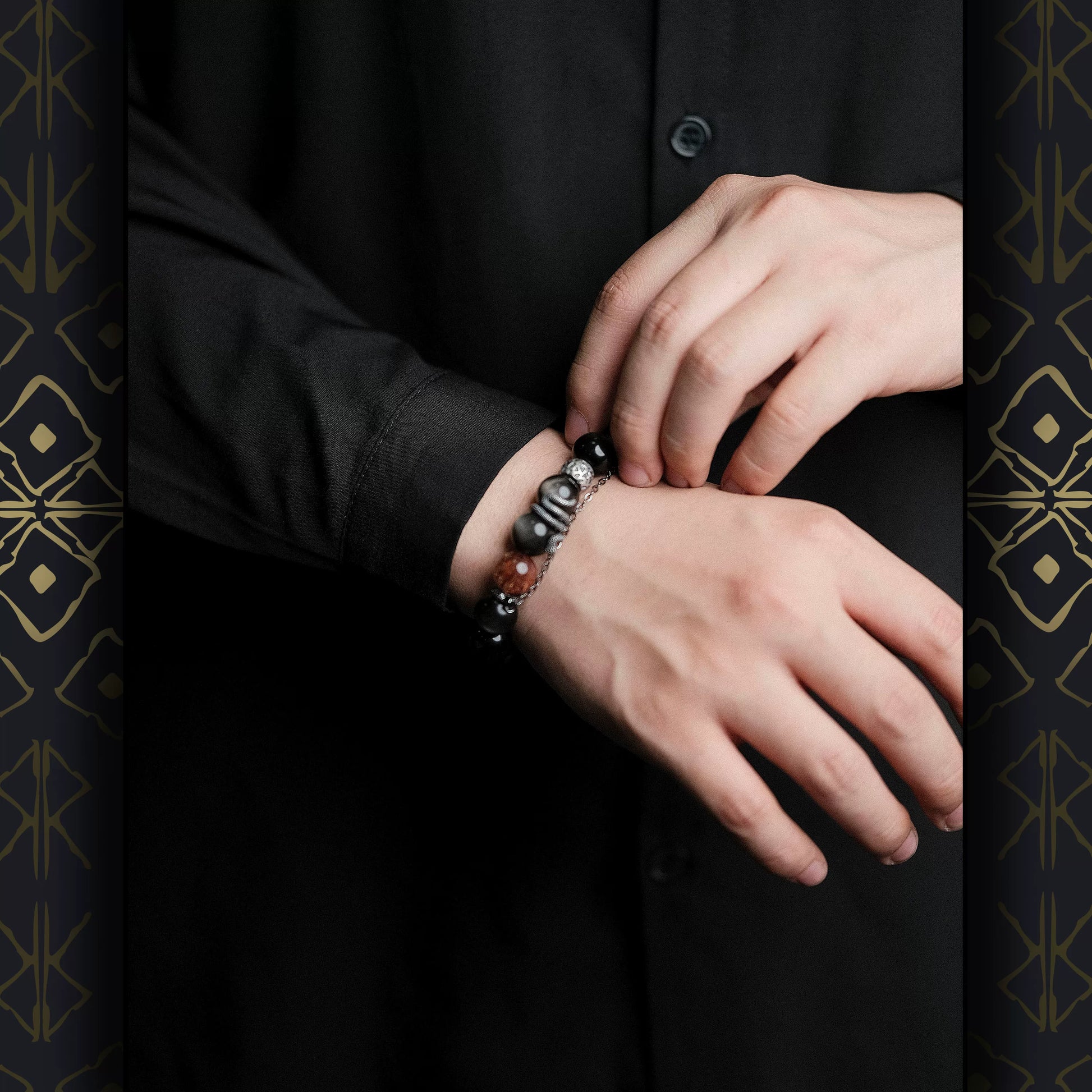 【黯影】S925银黑曜石手链男高级感小众手串珠生日饰品本命年礼物